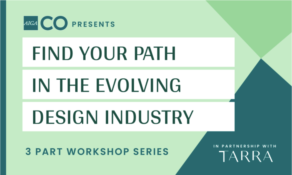 I have partnered with AIGA Colorado and TARRA to facilitate this three part workshop series. You can attend one or all three. These workshops will be limited to a small group to have discussions. Each participant will have the opportunity to find their unique dream career path and goals.